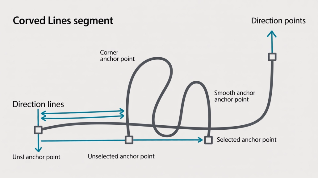 - For curves, click and drag to adjust direction handles.